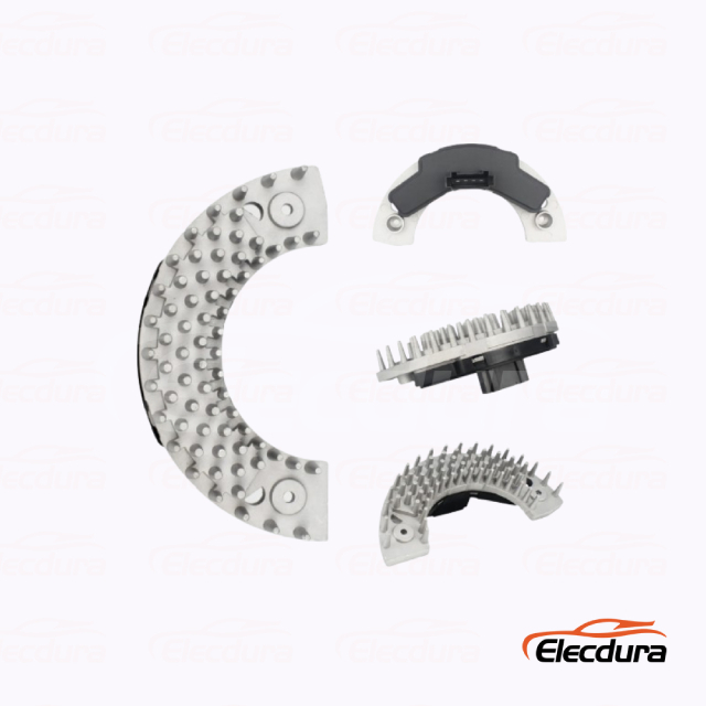 Elecdurauto Volvo HVAC blower power stage (blower motor resistor module) is designed to regulate blower speed smoothly and reliably under long HVAC duty cycles. This unit features a curved aluminum pin heat sink to dissipate heat efficiently and an OE-style connector interface for accurate matching—ideal for distributors and importers managing bulk inventory.